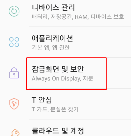 2. 잠금화면 메뉴를 선택합니다.